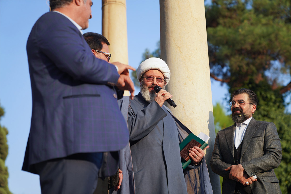يُعدّ برنامج محفل التلفزيوني واحدًا من البرامج القرآنية الجماهيرية التي تبثها هيئة الإذاعة والتلفزيون للجمهورية الإسلامية الإيرانية. وفي المناسبات الخاصة ومن خلال السفر إلى مدن مختلفة، يقيم هذا البرنامج احتفالات عديدة بمشاركة الناس. ومن بين هذه الاحتفالات، أقيم احتفال في مدينة شيراز تزامنًا مع يوم تكريم حافظ، بجوار قبر هذا الشاعر البارز. إن خواجة شمس الدين محمد حافظ الشيرازي يُعدّ من أشهر شعراء إيران، الذي لم يقتصر إبداعه على نظم قصائده الخالدة فحسب، بل كان أيضًا حافظًا للقرآن الكريم، كتاب المسلمين المقدس.
