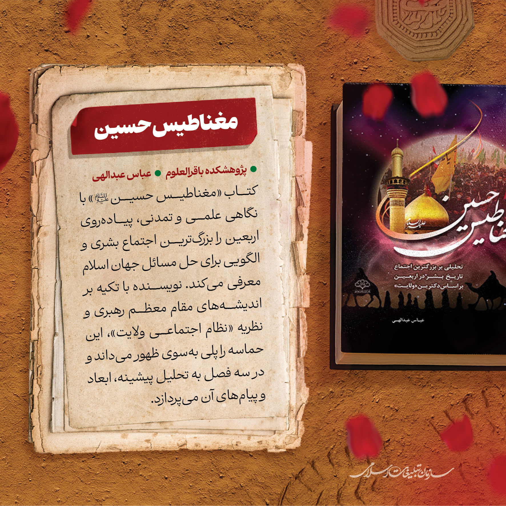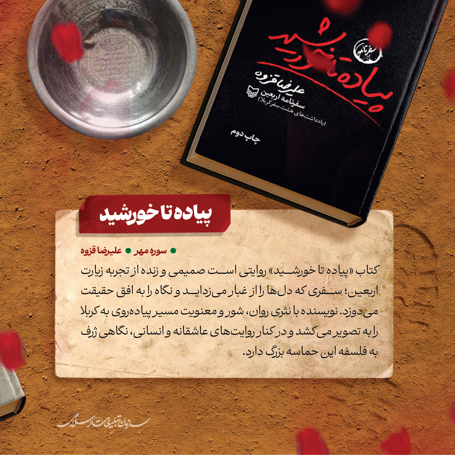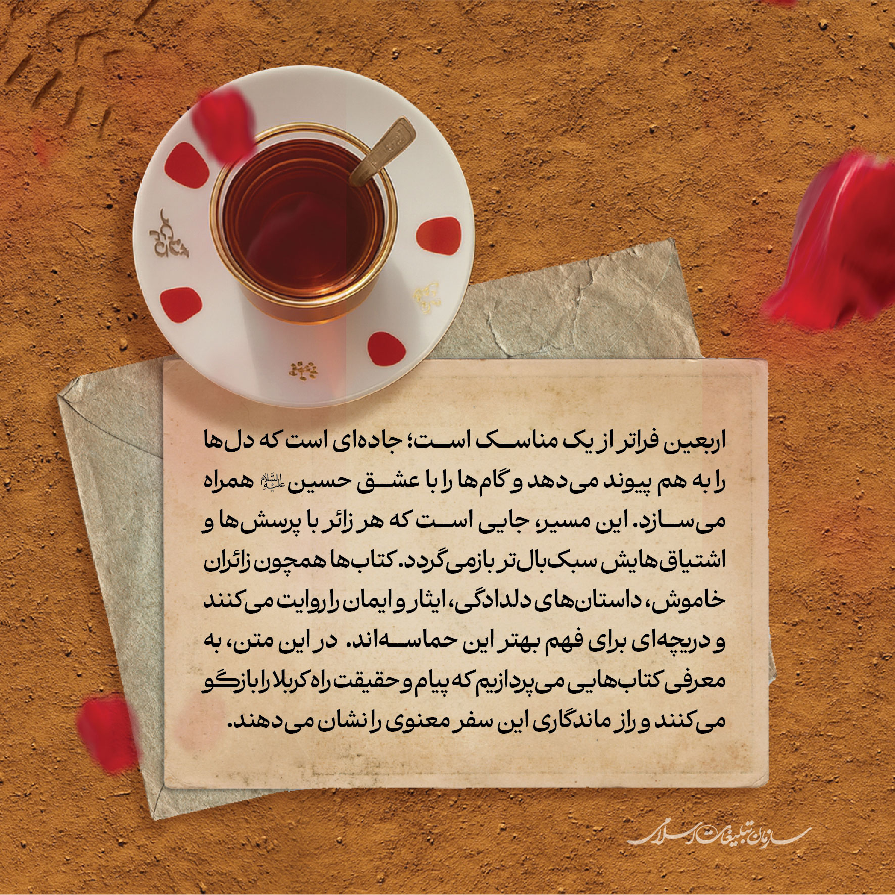 به گزارش روابط عمومی سازمان تبلیغات اسلامی، اربعین فراتر از یک مناسک است؛ جاده‌ای است که دل‌ها را به هم پیوند می‌دهد و گام‌ها را با عشق حسین علیه‌السلام همراه می‌سازد. این مسیر، جایی است که هر زائر با پرسش‌ها و اشتیاق‌هایش سبک‌بال‌تر باز می‌گردد. کتاب‌ها همچون زائران خاموش، داستان‌های دلدادگی، ایثار و ایمان را روایت می‌کنند و دریچه‌ای برای فهم بهتر این حماسه‌اند. در این اطلاع‌نگاشت، به معرفی برخی از کتاب‌های ناشران خانواده سازمان تبلیغات اسلامی می‌پردازیم که پیام و حقیقت راه کربلا را بازگو می‌کنند و راز ماندگاری این سفر معنوی را نشان می‌دهند.