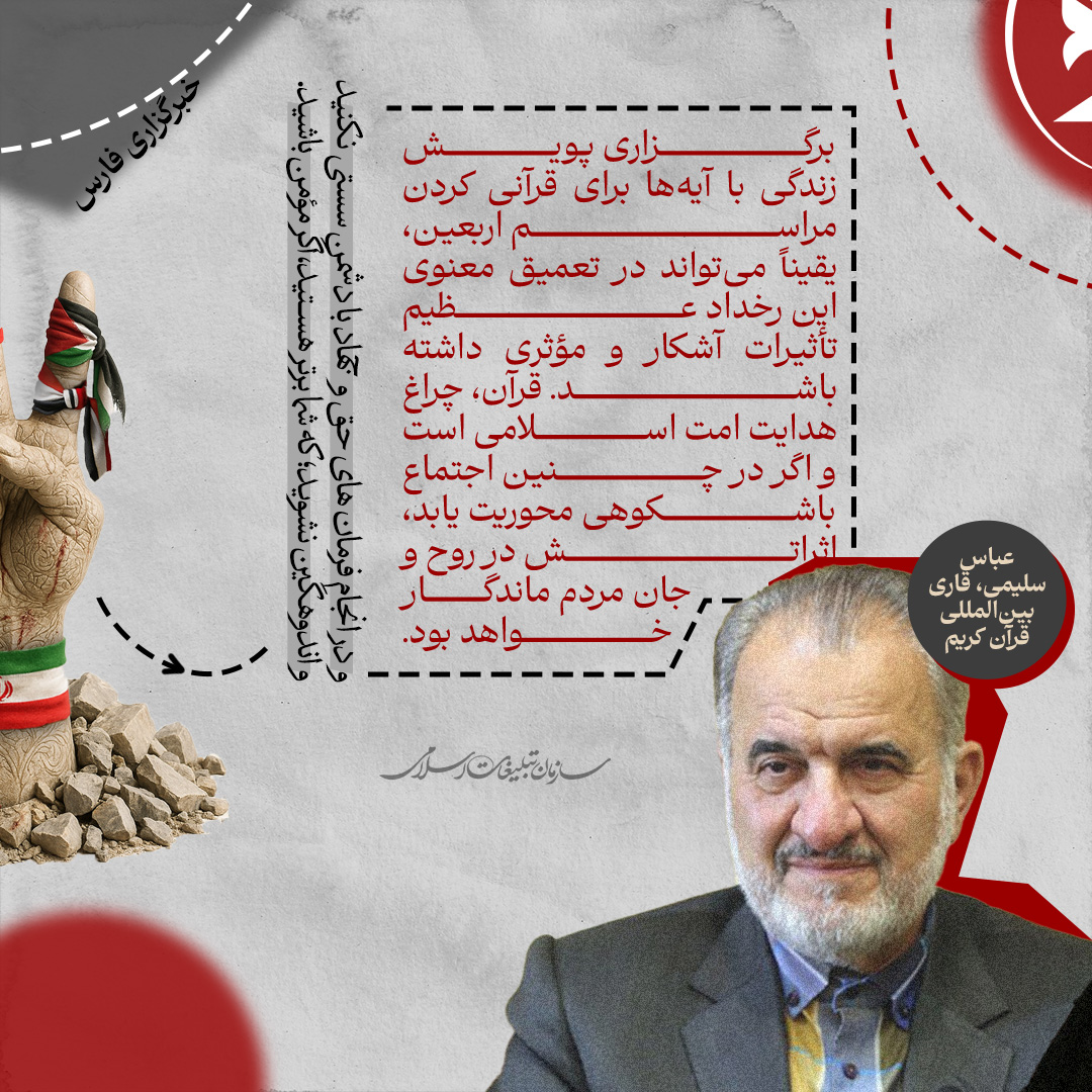 پویش ملی زندگی با آیه‌ها همزمان با ایام اربعین با محوریت ۵ آیه از آیات نصر و مقاومت در قالب نهضت ملی «عهد برائت» برگزار شد؛ در این اطلاع نگاشت به سراغ مرور نظر برخی از اساتید و چهره‌های قرآنی کشور در خصوص پویش ویژه ایام اربعین حسینی رفته‌ایم.