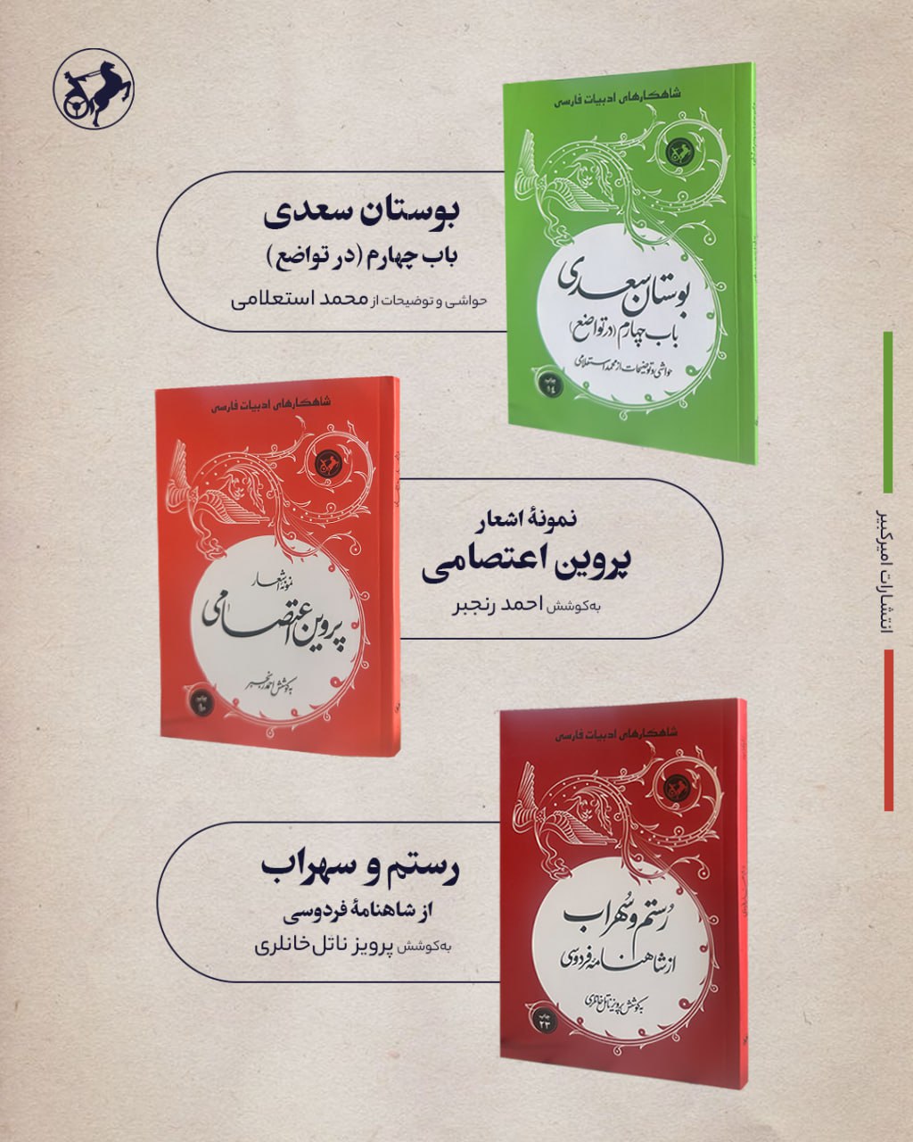 انتشارات امیرکبیر، با افتخار از انتشار مجموعه‌ی «شاهکارهای ادبیات فارسی» خبر داد. این مجموعه‌ی فاخر، یک گزیده‌ی بی‌نظیر از ارزشمندترین آثار ادبیات کهن ایران است که شامل اشعار شورانگیز و حکایات دلنشین از بزرگان سخن پارسی، همچون فردوسی حماسه‌سرا، نظامی گنجوی قصه‌پرداز، پروین اعتصامی نکته‌سنج و دیگر نام‌آوران ادب ایران‌زمین می‌شود.