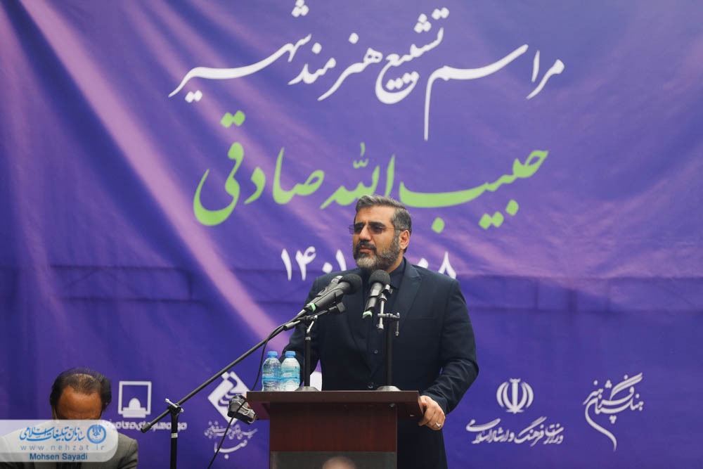 در مراسم تشیع پیکر مرحوم حبیب الله صادقی ، نقاش متعهد و انقلابی، حجت الاسلام محمد قمی - رئیس سازمان تبلیغات اسلامی - و محمد مهدی اسماعیلی - وزیر ارشاد اسلامی - به سخنرانی پرداختند و دوستان و همکاران حبیب هنر انقلاب، روایت هایی از همراهی با وی را بیان کردند .