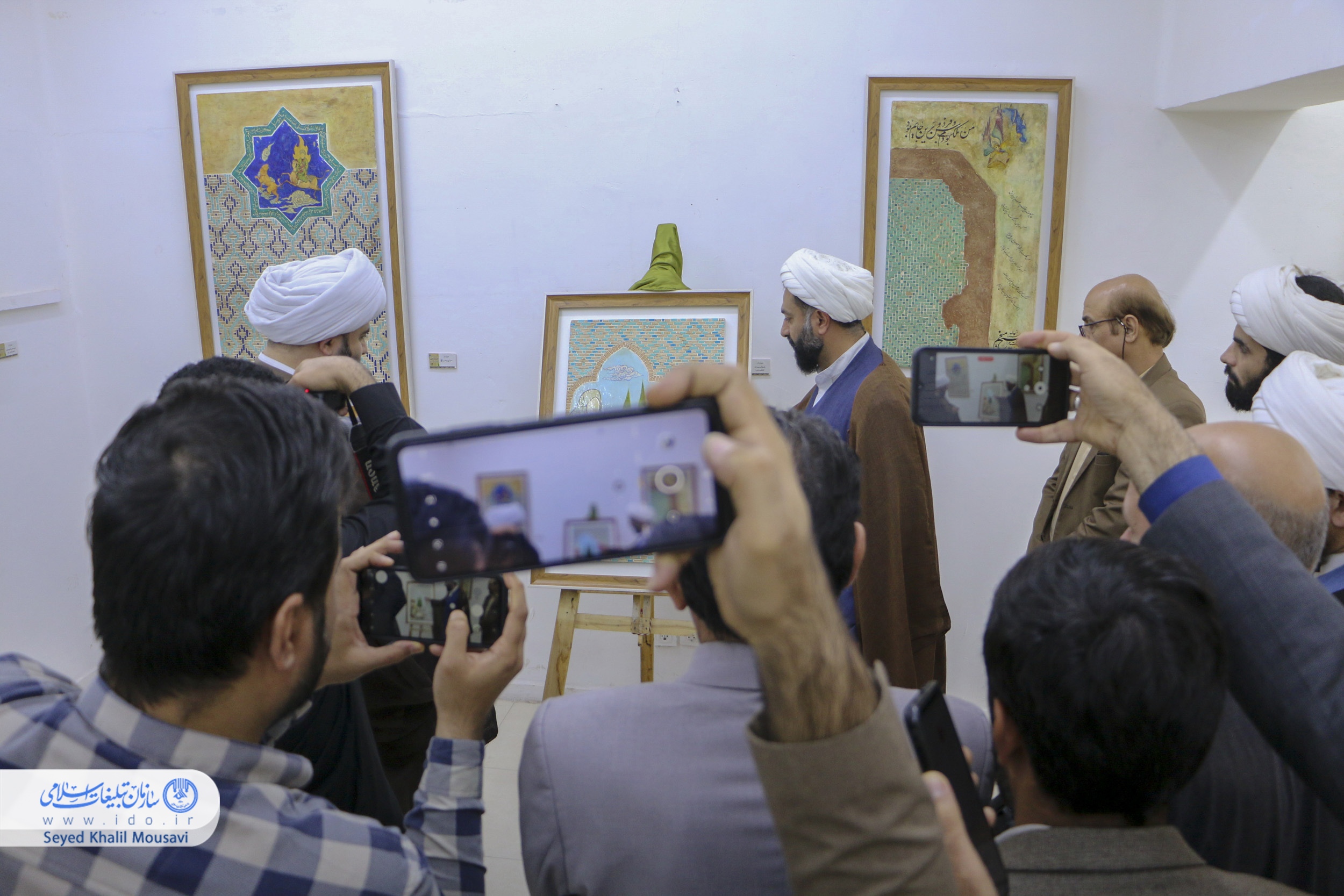 حجت‌الاسلام والمسلمین محمد قمی، رئیس سازمان تبلیغات اسلامی در سفر خود به استان خوزستان از تابلوی «حجاب» اثر هنری حجت الاسلام والمسلمین آرش نیک‌نژاد، هنرمند خوزستانی در گالری ریم اهواز رونمایی کرد.