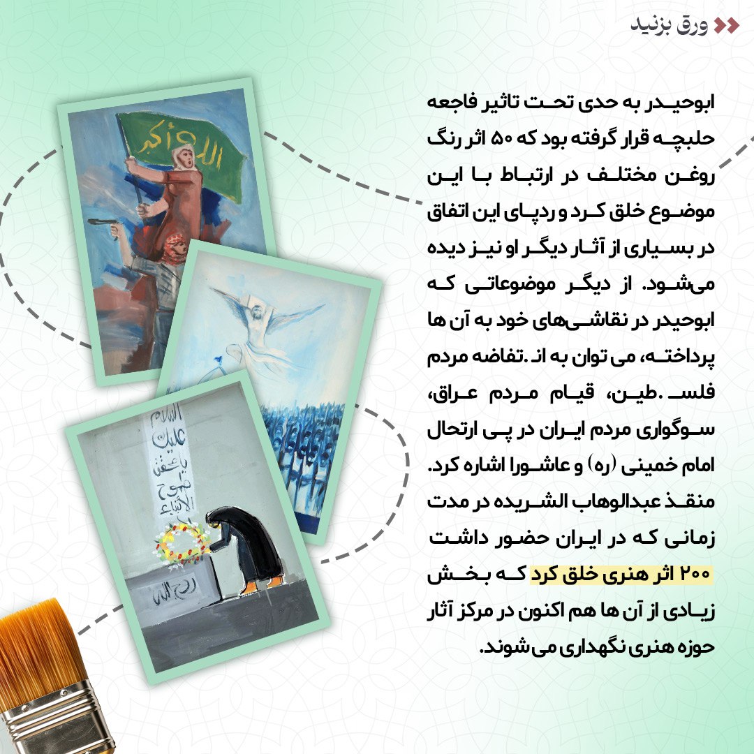 به گزارش روابط عمومی سازمان تبلیغات اسلامی، در آخرین روزهای دفاع مقدس، نقاش اسیری از اردوگاه اسرای عراقی تهران راهی حوزه هنری شد. هنرمندی که به خواست خود تسلیم نیروهای ایرانی شده بود و تا مدتی پس از آزادی نیز در ایران ماند. به مناسبت هفته دفاع مقدس، در این شماره از نشریه دیجیتال قصهی نقاش اسیری را مرور میکنیم که با دستور مستقیم رهبر انقلاب آزاد شد.